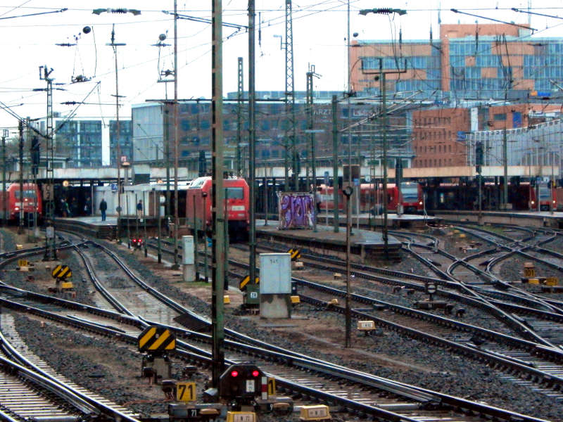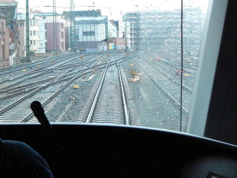 Treffer versenkt. Die Positionsangabe ist in etwa richtig. Kurz vor der Königstraße habe ich noch dieses Foto geschossen:Ich finde, das Bild von der Einfahrt in den Hbf ist ganz passabel geworden, dafür, dass ich in Bewegung war und zwei Scheiben nebst einer nicht unwesentlichen Zahl von Regentropen vor der Linse hatte.