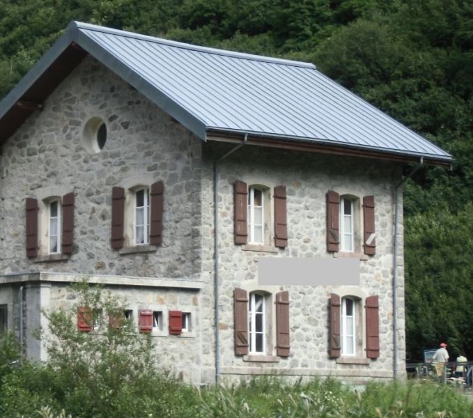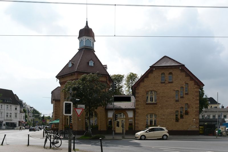 Das Gebäude ist ein ehemaliger Bahnhof und es existieren dort keine Eisenbahngleise mehr.