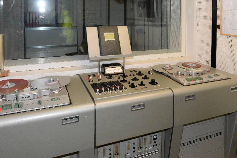 Dort steht ein Bauwerk, in dem ich dieses Rundfunkstudio fotografiert habe.