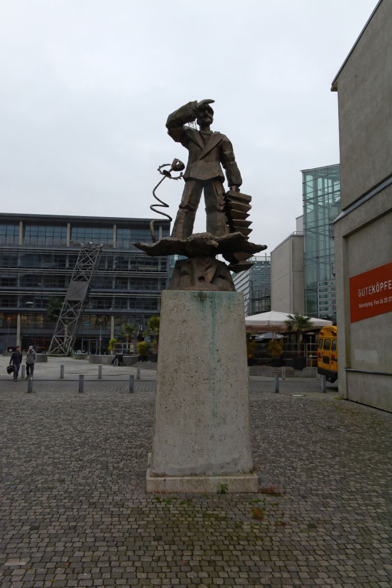 einem Betonsockel im Medienhafen auf gestellt