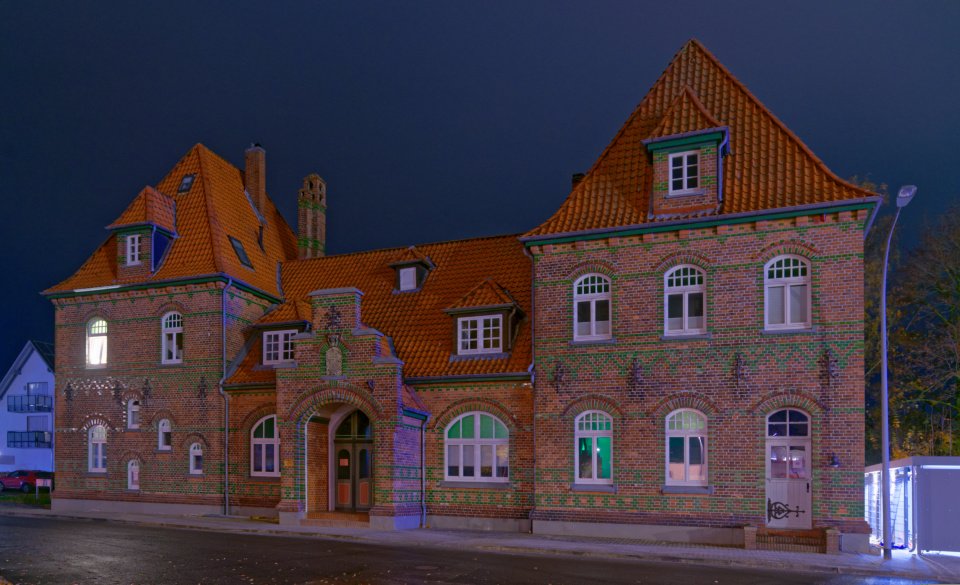 Halver Bahnhof versenkt. Ein schönes Bild des ganzen Bahnhofs hast du da gefunden. Heute wird das Bauwerk als Kulturbahnhof genutzt.