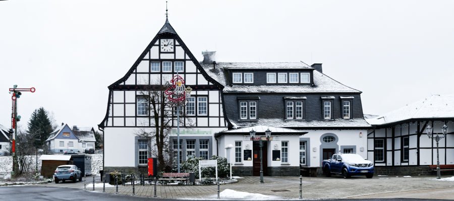 knapp vorbei ist auch daneben. Der Bahnhof steht nicht im Bergischen Land. Ansonsten hast du natürlich völlig recht, der Bahnhof passt architektonisch wunderbar zu den Bauwerken des Threads Schiefer geht's nicht.