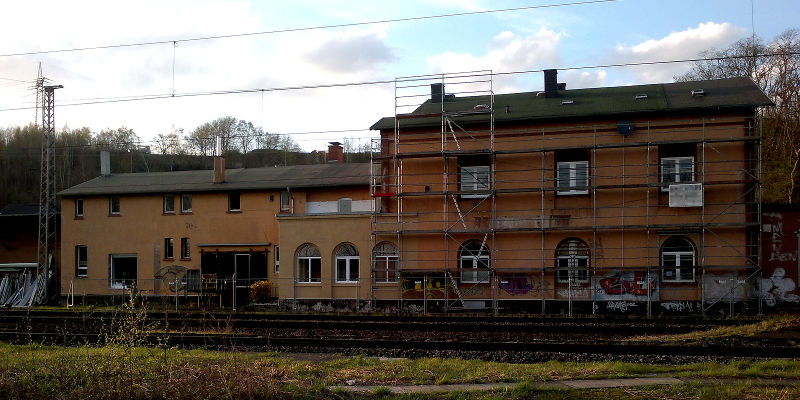 bei dieser Hütte, an der planmäßig verkehrende Züge schon lange nicht mehr halten, erkennt man wenigstens Bauarbeiten:Wo entstand das Bild?