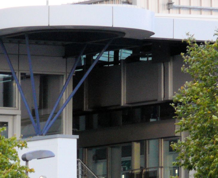 das ist dieses Gebäude, an dem man von den Zügen der Deutschen Bahn in die H-Bahn, deren Trasse auf deinem Foto zu sehen ist, umsteigen kann, um von dort direkt zum Flughafenterminal zu fahren.