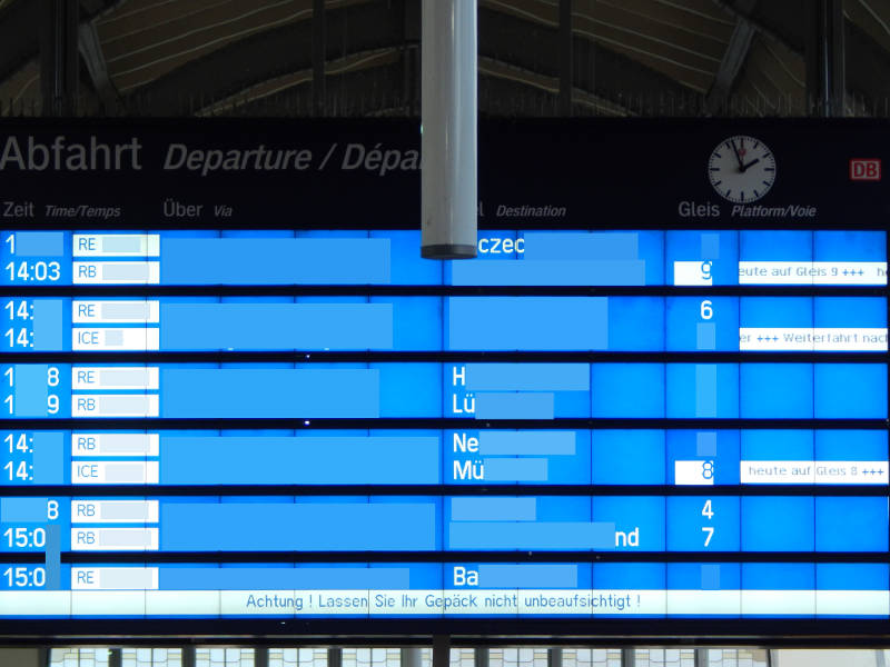 Die Regionalbahn um 14:03 Uhr abweichend auf Gleis 9 fährt auch nicht nach Kiel.