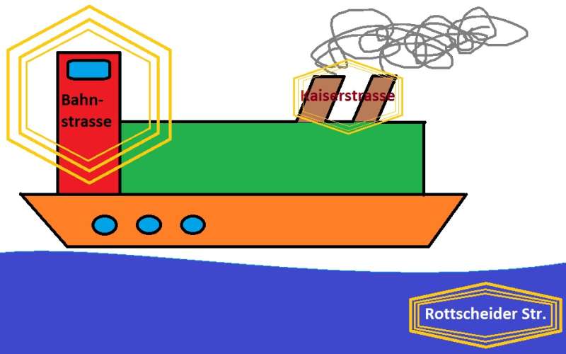 Bernd hat getroffen (der BMW steht in der Kaiserstrasse) und GüNNi hat versenkt (der Citroën fährt in die Bahnstrasse).