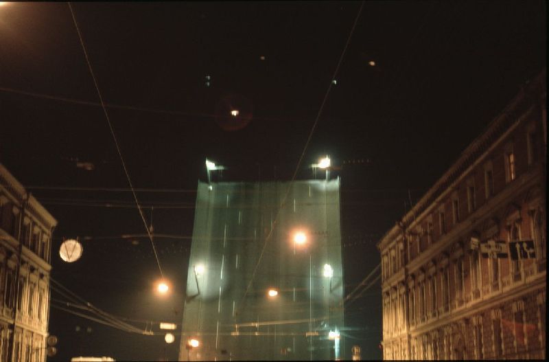 Man beachte die High-Tech-Absicherung und die Kombination von PKw, LKW, O-Bus und Strab.