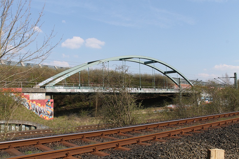 Also, hier sehe ich immerhin eine Oberleitung, aber keine Laterne am oberen Ende der Brücke.