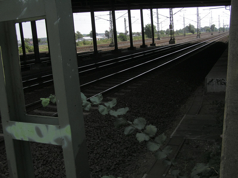 HaNull: Volltreffer. Die Gleise auf der Brücke sind die nördlichen Ausläufer des Rangierbahnhofs Gremberghoven. Aufnahme auf der A4, südlicher Kölner Ring, Fahrtrichtung WEST,