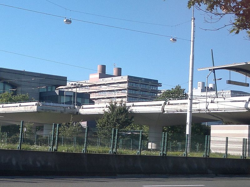 welcher Einrichtung (Gesamtbezeichnung) gehören die Gebäude im Hintergrund der folgenden Brücke an?