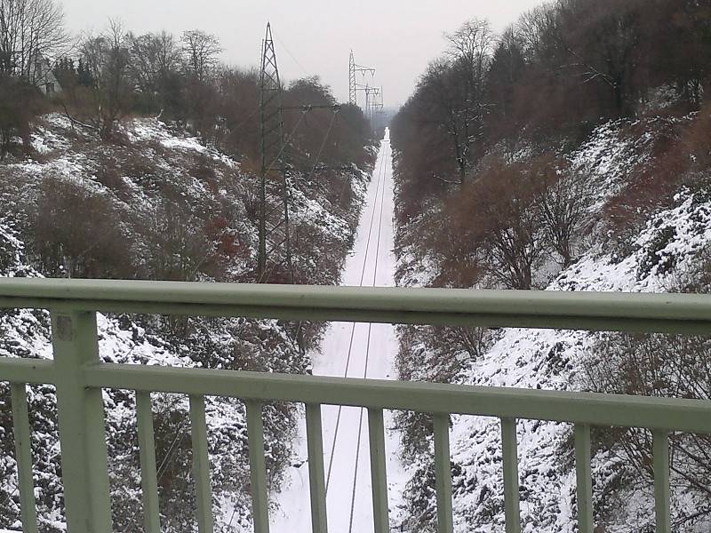Bei der nächste Bücke liegt die Straße unterhalb der Gleise. Sie schützt außerdem bei Spaziergängen ganz wunderbar vor Hagel, Schnee und Regen.