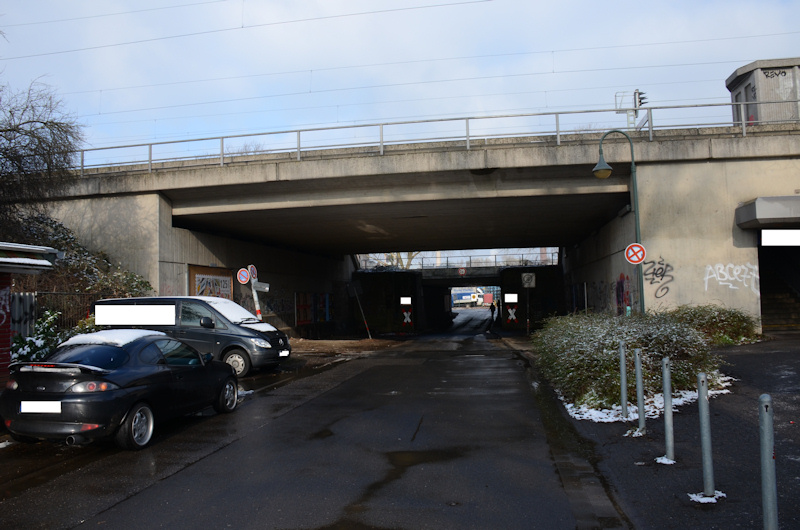 nix Italien, nix Dolomiten, aber Straße auf Brücke über Schienen und nix Geisslerspitzen