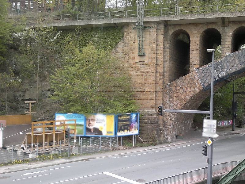 Stefan meint sicher die blaue Bogenbrücke (auf seinem Rätselbild ist nur ein Widerlager zu erkennen). Und diese überbrückt nur 3 der dortigen 8 Gleise.