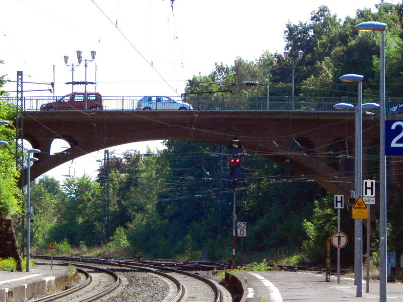 wenn ich von Limburg über Wetzlar, Gießen, Alsfeld und Fulda nach Gersfeld (Rhön) bummele, fahre ich ununterbrochen südlich der gesuchten Brücke. Also ist die Antwort ja.