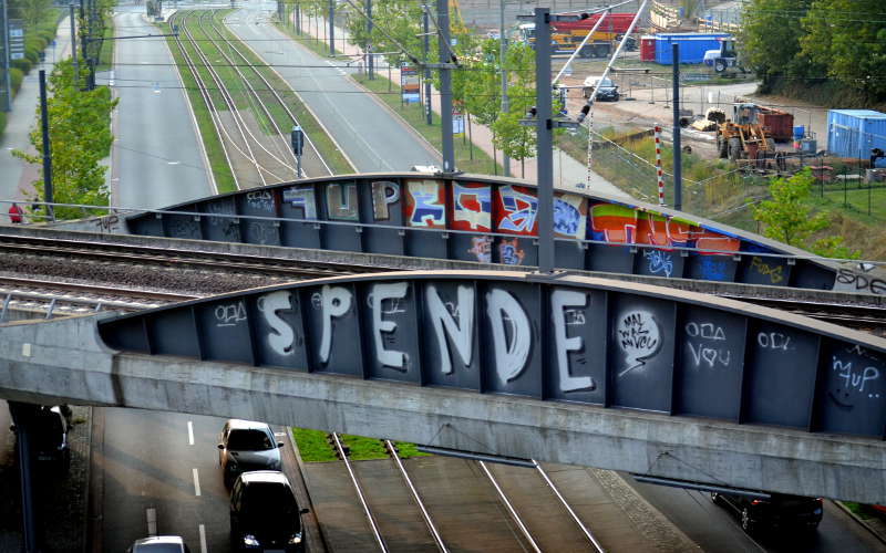 Dass ich von Schmierereien auf Bahnbauwerken nichts halte, habe ich bereits mehrfach erwähnt. Trotzdem dieses Bild:Eine Spendenbrücke ist ja eigentlich eine gute Idee. Man erwirbt sie für 2,90 Millionen Euro und unterstützt damit einen guten Zweck. Wo steht dieses Modell?