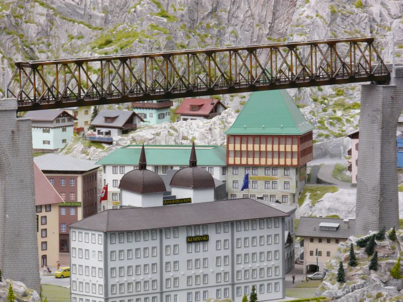 die Brücke ist im Schweizteil über dem Kempinski-Hotel.