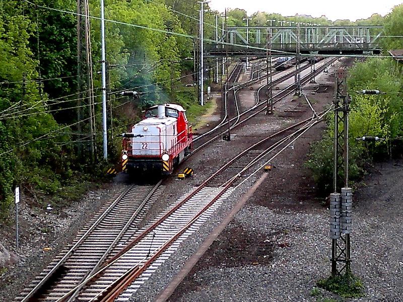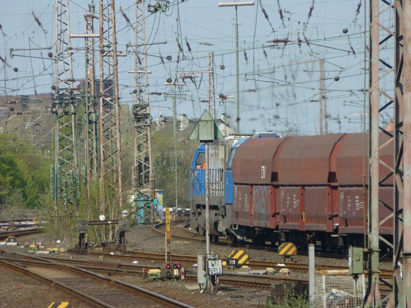 hier das nächste Rollmaterial:Leider wollte die Lok bei ihren Rangiermanövern nicht näher rankommen, sodass ich selbst nicht weiß (und bisher auch nicht herausgefunden habe), um welche Baureihe bzw. welchen Betreiber es sich handelt.