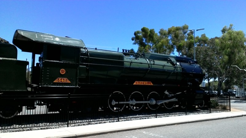 ja Günni, du hast versenkt! Das Dampfross steht am Bahnhof Perth-Ost der Endstation des Indian-Pacifik. Er verbindet auf 4350 km die Städte Perth und Sydney bzw. den Indischen- mit dem Pazifischen Ozean. Und das in planmäßigen 65 Stunden.