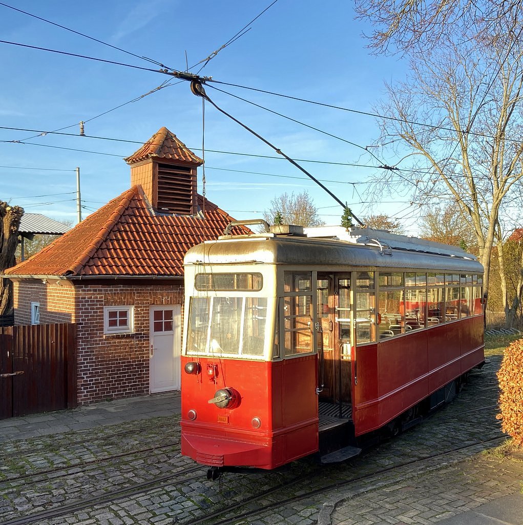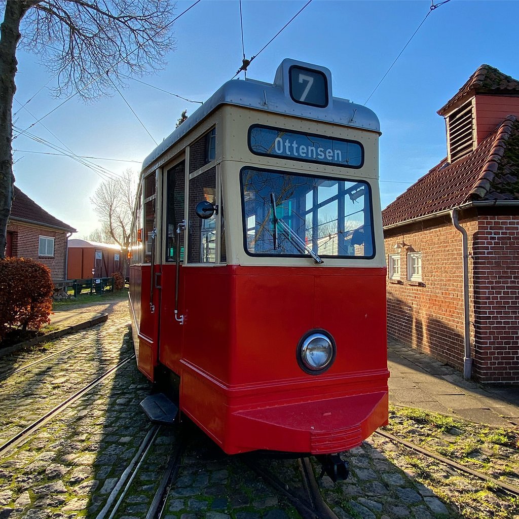 Das Fahrzeug ist ein Fahrzeug vom Typ V3 der ehemaligen Hamburger Straßenbahn.