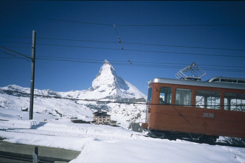 Schweiz Gornergratbahn? Wiki-Artikel mit Bild des Triebwagens.