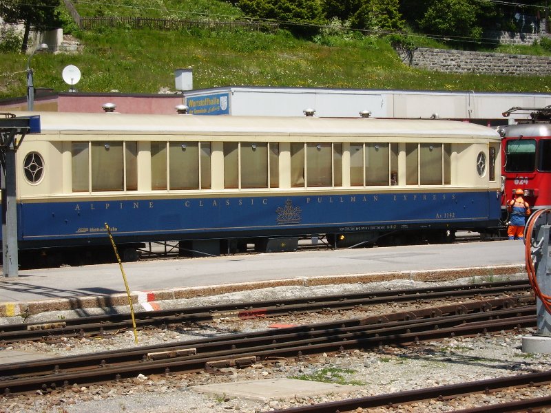 Das ist ein Salonwagen der Rhätischen Bahn.