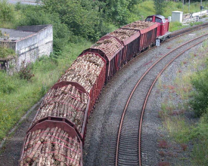 Holztransport in der Draufsicht mit reichlich Bewegungsunschärfe.