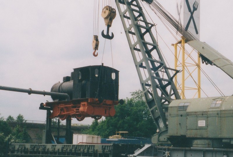 Dampfkran mit Dampfspeicher Lok O&K 3420/1909 im Auto und Technik Museum Sinsheim.