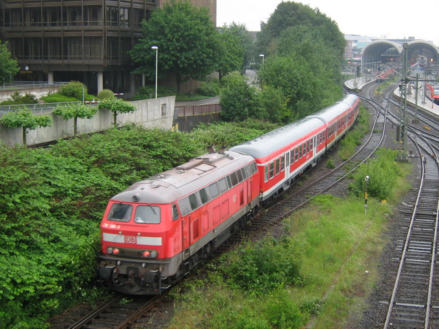 Es ist gestern im Regen entstanden. Der Zug gebildet aus zwei Silberlingen und Wittenberger Kopf wurde von 218 396-0 in den Bahnhof auf Gleis 6 geschoben. Ganz nebenbei, das ist der beste Zug(auf die Zusammenstellung bezogen), der hier in Kiel fährt. Wie Torsten96 und ich letzte Woche freudig auf dem Rückweg vom MiWuLa nach Hause