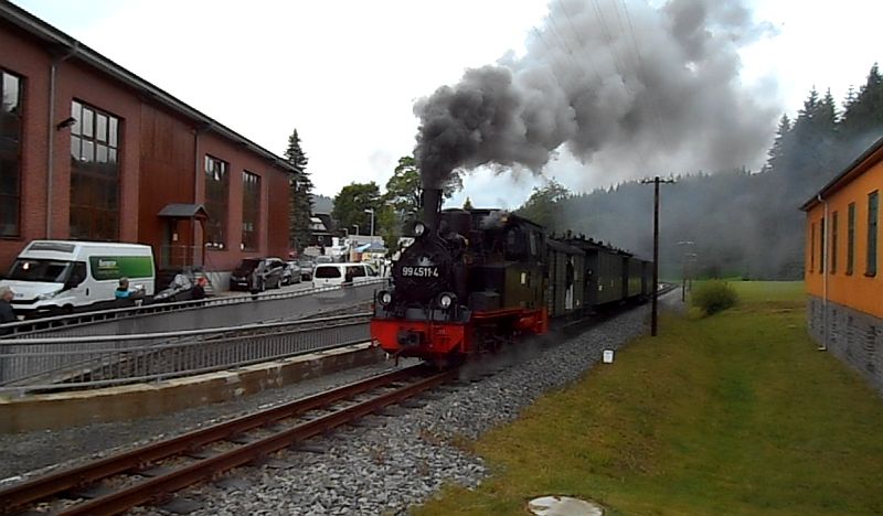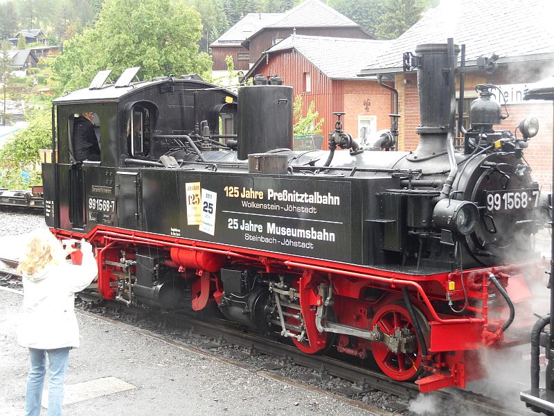 Los ging es vom Bahnhof Jöhstadt,vorbei am Lokschuppen,an der Ausstellungs- und Fahrzeughalle, am Haltepunkt Schlösselin Richtung Schmalzgrube.Zuvor hatte ich noch bemerkt, das es nicht nur am Rhein einen Loreleifelsen gibt, sondern auch hier.Ziel der knapp 8 km langen Fahrt war Steinbach, bekannt durch sein Wasserhaus. +++Fortsetzung folgt+++