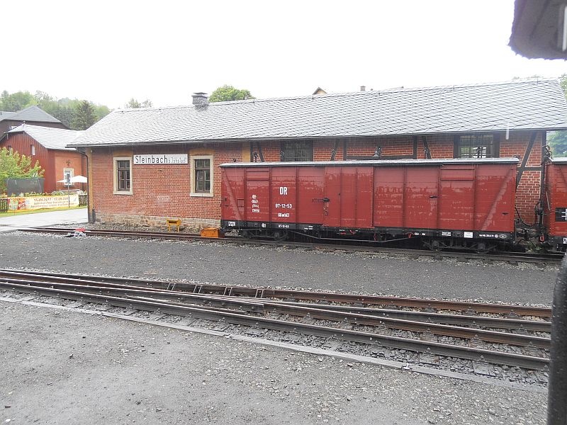 Im rekonstruierten Bahnhofsgebäude von Steinbachwar eine kleine Ausstellung historischer Ansichtskarten der Preßnitztalbahn (leider nicht ganz blendfrei). Natürlich gab es auf der Strecke auch jede Menge historischer Relikte zu sehen wie diese Fernsprechbudeund die Telegrafenmasten. Auch diverses Rollmaterial war während der Fahrt zu beobachten, wie auf den nachfolgenden Bildern zu sehen. +++Fortsetzung folgt+++