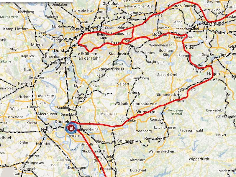 Köln Hbf - Düsseldorf Hbf - Oberhausen Hbf - Gelsenkirchen Hbf - Essen Hbf - Bochum Hbf - Dortmund Hbf - Hamm(Westf) - Gütersloh Hbf - Bielefeld Hbf - Herford - Minden(Westf) - Hannover Hbf - Braunschweig Hbf - Berlin Hbf - Berlin Ostbahnhof.