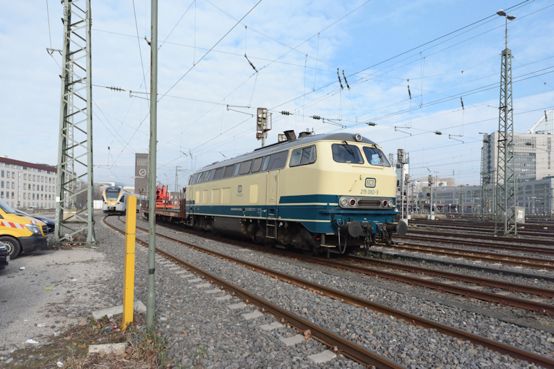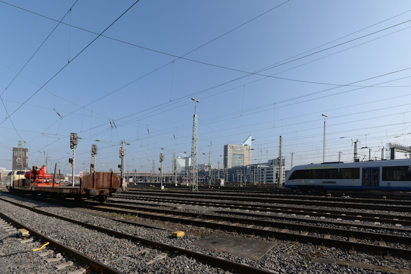 die 215 hat mich gereizt, den Bahnhofsbereich auf Gleishöhe zu besuchen. Also immer schön das Tele nutzen und den Gleisen fern bleiben. Man will ja nicht, dass ein ICE stolpert.
