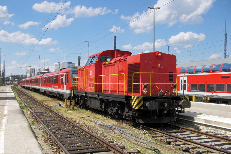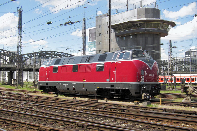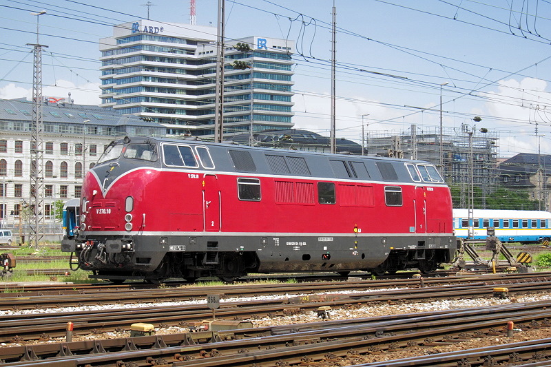 - Im Gleisvorfeld der Münchner Hbf stand die V270.10 der SGL Schienen-Güter-Logistik GmbH abgestellt. Bei der V270.10 handelt es sich um die ehemalige 221.124 der Deutschen Bundesbahn. Im Jahr 1989 gelangte die 221.124 zusammen mit 19 weiteren Maschinen zur Griechischen Staatsbahn. Im Juni 2002 wurden die Griechenlandloks wieder nach Deutschland geholt und nach und nach für verschiedene Privatbahnen im (noch) Arriva Werk Neustrelitz wieder aufgearbeitet.