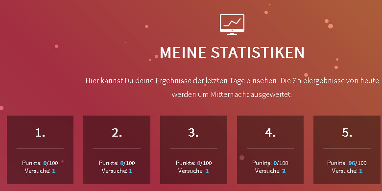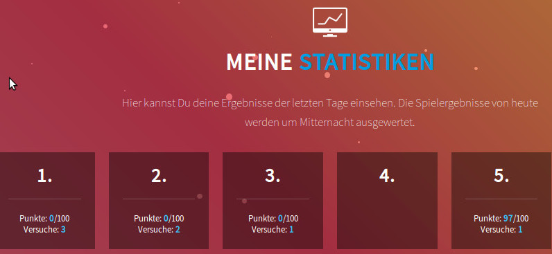 wie kann es passieren, dass unter meinen Statistiken nur 4 Türchen anstatt gespielter 5 angezeigt werden? Außerdem wird bei jedem Bild nur 1 Versuch angezeigt, obwohl ich schon mehrere Versuche gestartet habe?