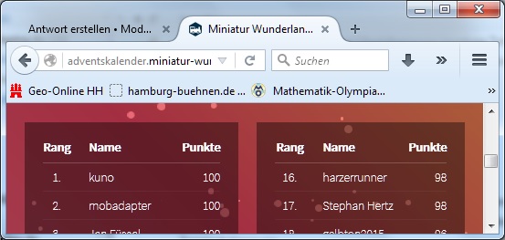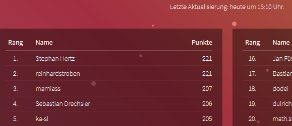 @ Micha: Ich bin 4 Plätze vor Dir. :mrgreen:
