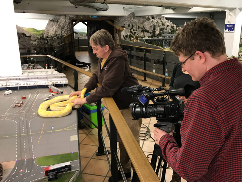 Tatsächlich war uns bei einigen Dingen etwas mulmig, aber wir haben alles dafür getan, dass keine ernsthaften Schäden entstehen. Tatsächlich waren die einzigen Opfer der Drehs eine verbogene Oberleitung durch fallende Geschenke, ein abgerissenes Treppenstandmodell am Flughafen durch die Schlange und ein abgebrochener Laternenmast, als die Kröte einmal sehr dynamisch weggesprungen ist.