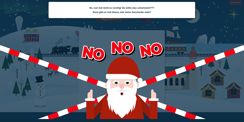 Der ist übrigens auf 6 Stunden eingestellt, ich empfehle daher, jeden Tag ein Türchen zu öffnen