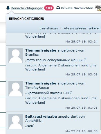 Dass dieses Verfahren notwendig ist, kann sehr imposant mit den Vorfällen des letzten Wochenendes belegt werden: Von den 103 Benachrichtigungen waren knapp 100 nichts als Spam, der auf Freischaltung wartet: Solche Poster werden dann samt ihrem Posting im "Rundordner" entsorgt.