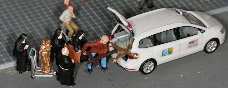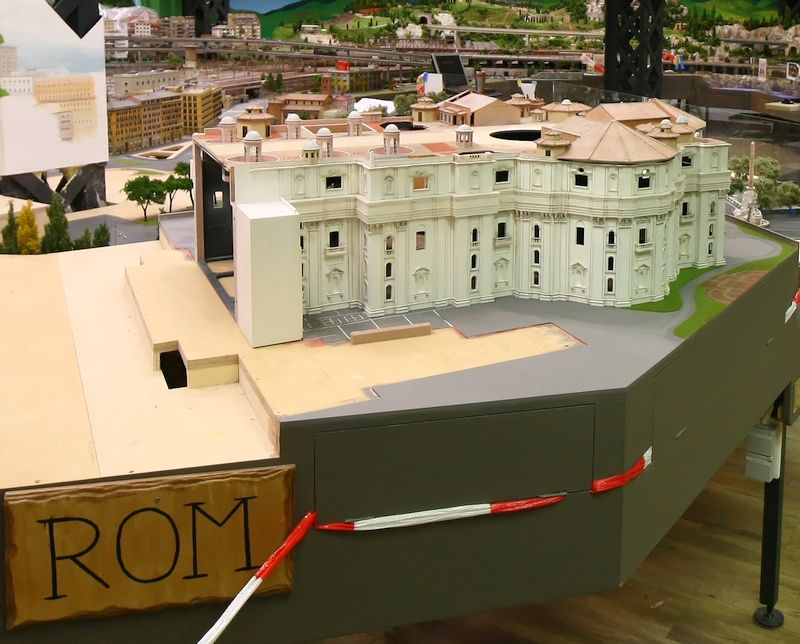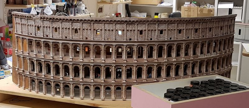 Ein ganzer Tag für nur eine Reihe Verkleidungselemente. Wer das einmal beobachtet hat erfährt eine noch grössere Ehrfurcht vor den Modellen. Es gibt ja nicht nur ein Kolosseum, sondern noch einen Petersdom und einen Bahnhof und ... und ... und ...