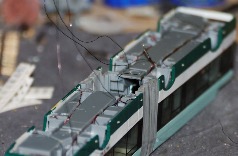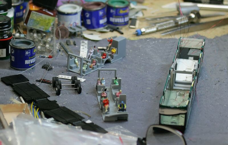 Aber wir haben ja noch eine andere Leiche im Keller, also zurück zum Bus. Auf jeder Seite unzählige Seitenmarkierungsleuchten, Blinker, Scheinwerfer, Rücklicht, Zielanzeige und ein quasi durchsichtiger Innenraum zwingen zur Kreativität, die Kabel werden in eigens gefrästen Kanälen unter dem Fahrgestell versteckt, die Vorwiderstände in die Radhäuser eingebaut. Feierabend und Ratlos, so ergeht es dem Bus. Leider sind die Fotos nicht so scharf wie sie sein sollten, morgen gibt es was Scharfes aus dem Vatikan.
