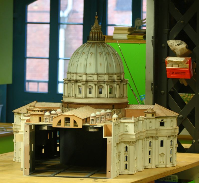 Beeindruckt beim Petersdom hat mich neben der bekannten Detailverliebtheit insbesondere die unglaublich komplexe Vorarbeit, die notwendig ist, um ein solches Großmodell herstellen zu können. Diese Vorarbeit konnte ich natürlich an diesem Tag nicht beobachten, aber es fügten sich, wie bei einem Puzzle, viele Teile zum großen Objekt zusammen.
