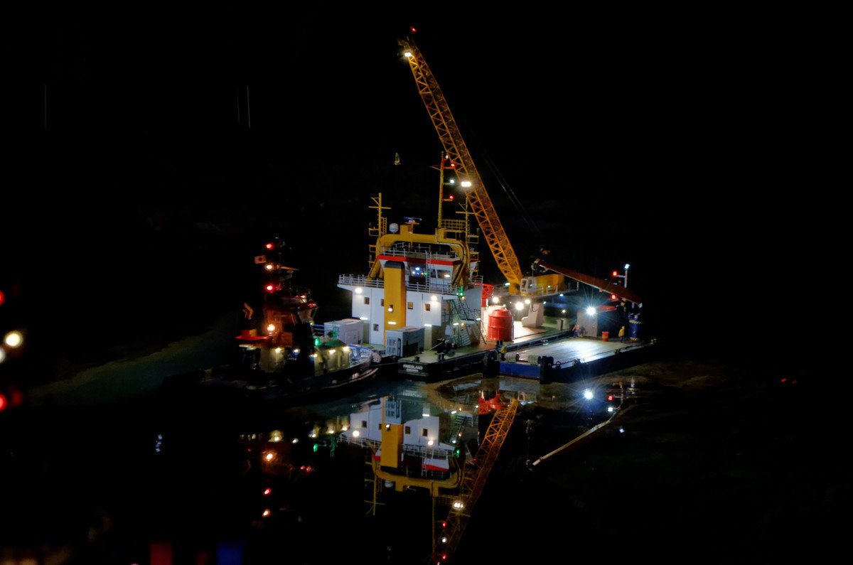 Als es mit einem Lotsenboot zu einem kleinen Missgeschick kommt, kann das Kranschiff eindrucksvoll unter Beweis stellen, wozu es jetzt schon fähig ist.