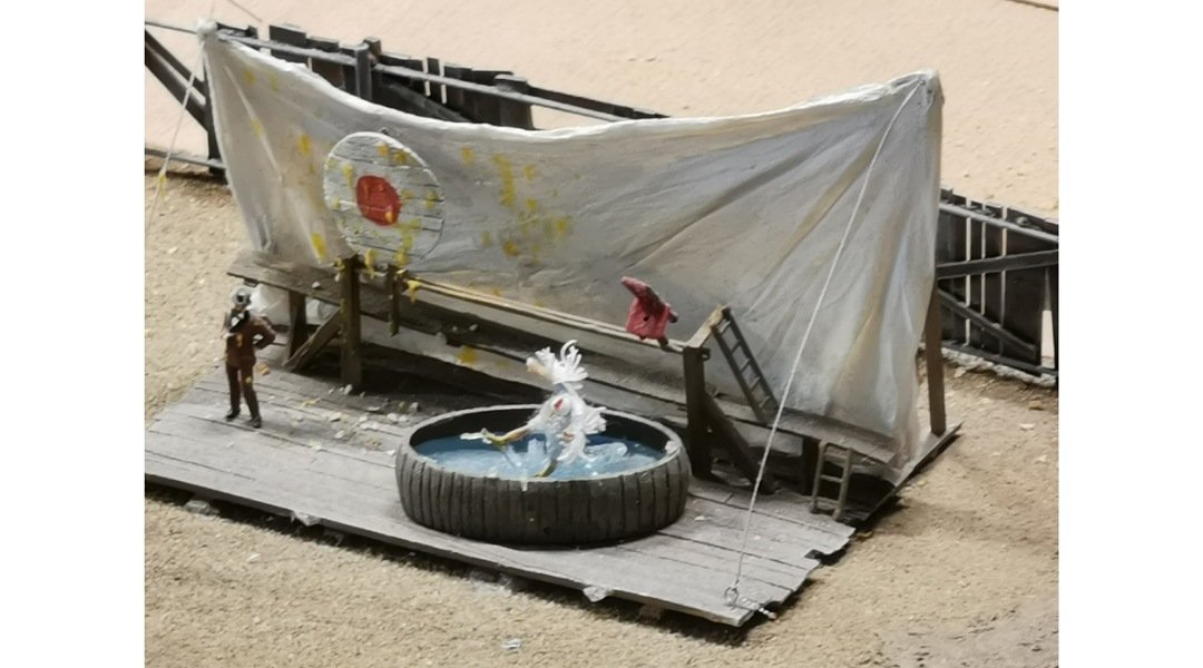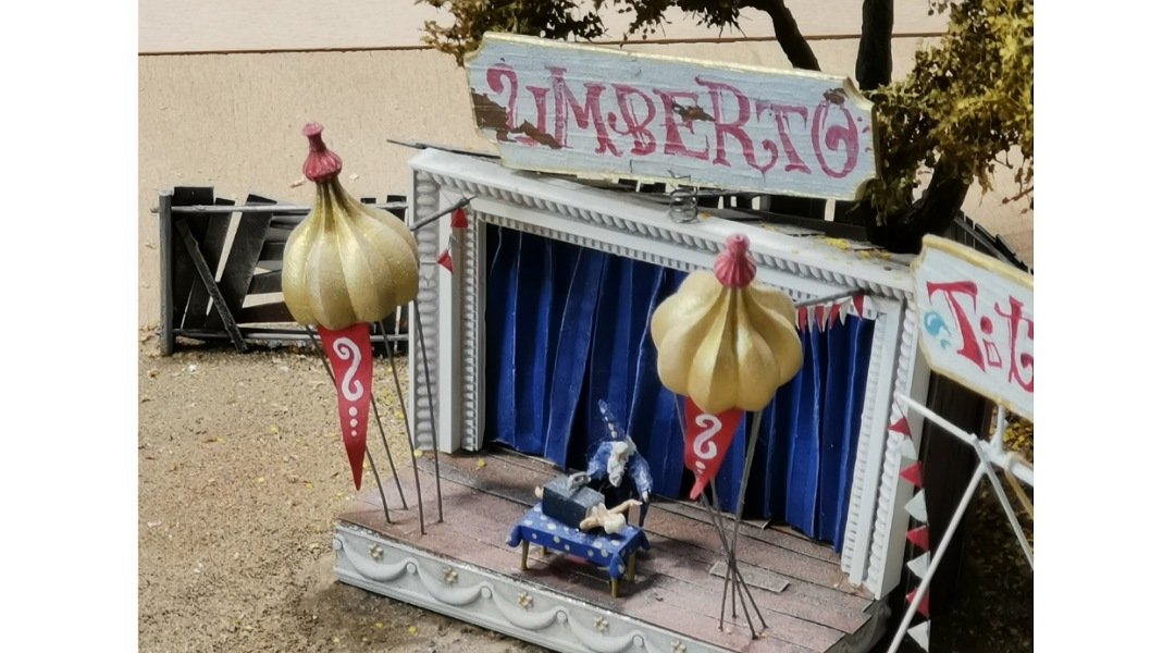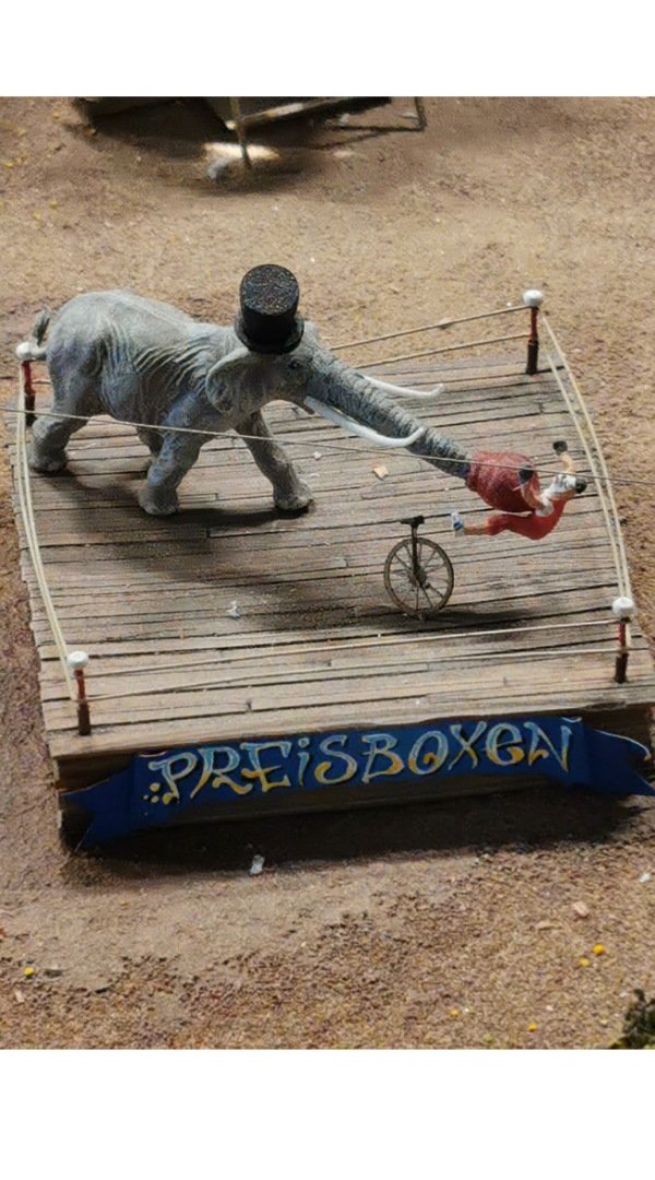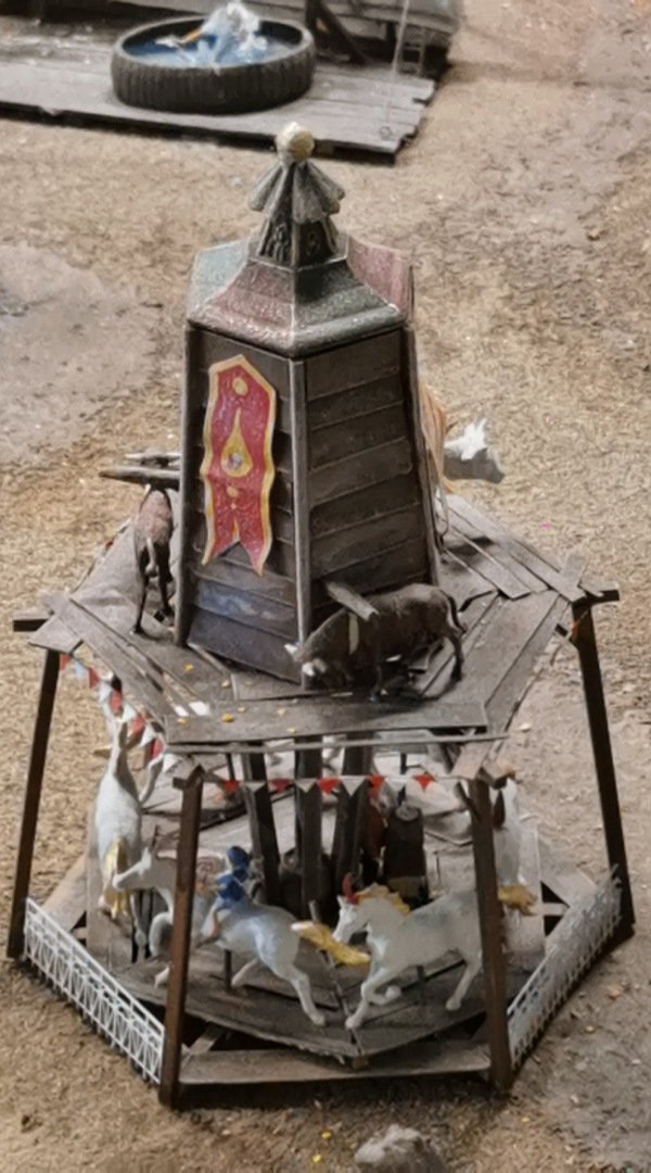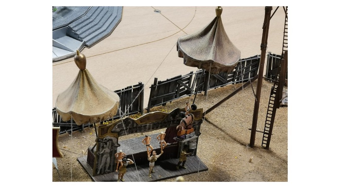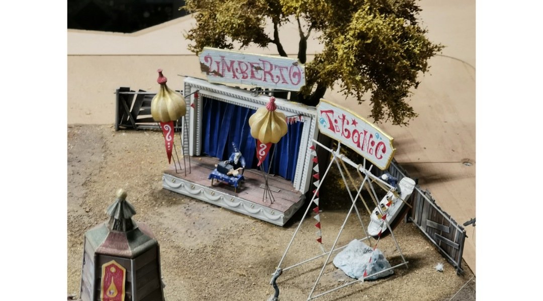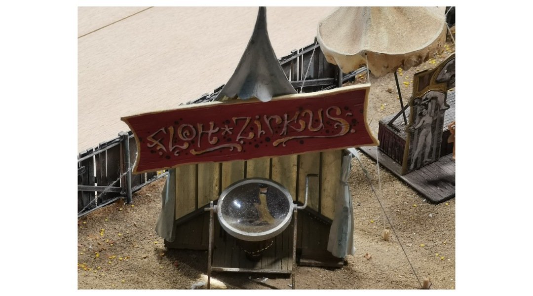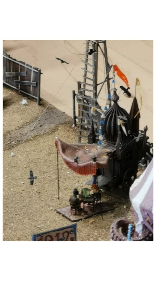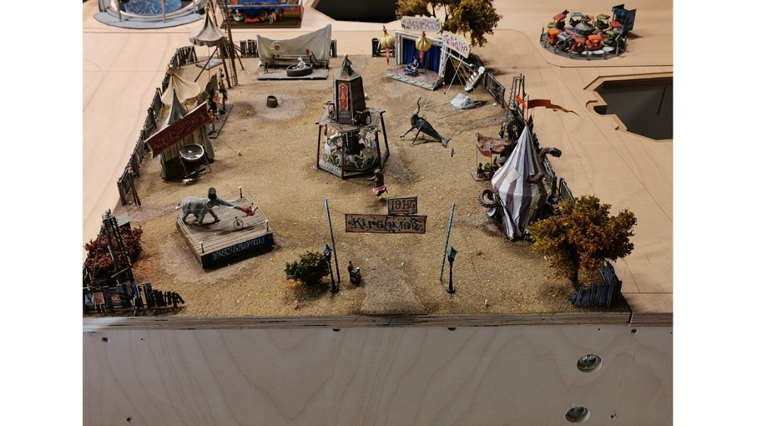 Ich habe auf der kleinen Bahn einen Zug fahren sehen die Kirmes ist auf der Fläche neben dem neuen Anlagenteil die ganzen Modellen sind aber auf einer wie ich glaube austauschbaren Platte montiert .