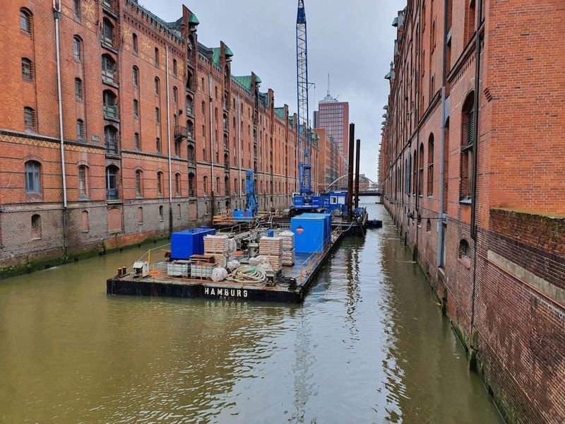 Die Arbeiten für die Brücke über den Fleet sind in vollem Gange.