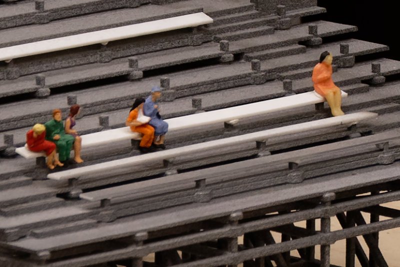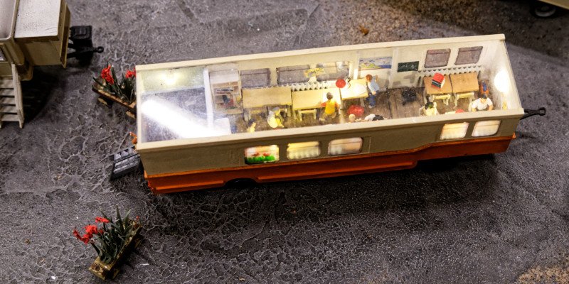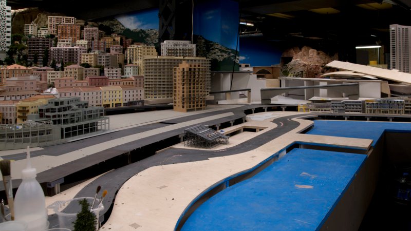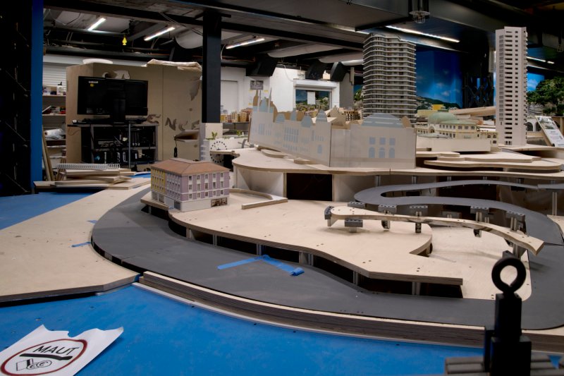 Zunächst Mo(i)naco: Aus dem richtigen Blickwinkel verspüre ich etwas Hobbykeller-Atmosphäre. Es liegen Bretter neben umfunktionierten CWP-Schalen herum, daneben Klebeband, Schraubzwingen und alles mögliche andere. Wäre der Rolladen rechts nicht oben, könnte man denken es sei der Modellbahnkeller zweier Doppelhaushälften.Okay, mit sehr professionellen Arcaden vor einem für MoBa-Keller eher untypischen Stahlträger:Und mit sehr detaillierten Häusern, die sich perfekt in die Landschaft einfügen:Eine einsam besetzte Tribüne. Ist das Preiserlein-Budget mal wieder gekürzt worden?Achso, die Formel 1-Strecke, definitiv eine Nummer zu groß für den Modellbahnkeller, ist auch noch nicht fertig:Kein Wunder, da es nicht nur enge Kurven gibt...sondern auch steile Gefälle, die das Wahnsinnsprojekt Formel 1 nochmal spannender machen:Und dann wäre da noch die Kirmes...Leo hochkonzentriert:Diese Kirmes-Aufnahmen entstanden am 18.06.2020, also noch 12 Tage vor der Eröffnung.