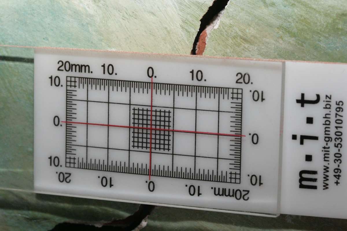 Wenn ich das Bild mit dem Riss richtig interpretiere, ist auf dem Riss eine Art Plombe. Die sollte reißen, wenn sich der Riss ändert. Sprich der Riss sollte schon etwas länger sein. Anfang Oktober war er zumindest schon, Inclusive. Plombe.