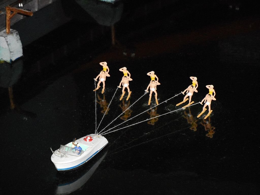 Im Neuen Jahr ist zunächst Gießharz-Gewässerauffrischung ein Hauptprogramm. Betroffen sind auch die Gewässer in Florida, wo sich normalerweise schnelle Boote und Wasserskiläufer*innen tummeln. Dazu gehört auch das Foto mit der dortigen Frage: Es zeigt die Spur des sensationellen Bootes, das eine entsprechende (Bug- und Heck-) Welle bewirkt - und nicht sichtbar die ehemaligen vier damit verbundenen gezogenen Wasserskiläufer*innen, die bei annähernd gleicher Geschwindigkeit absolut keine Spuren im Wasser hinterlassen hatten.