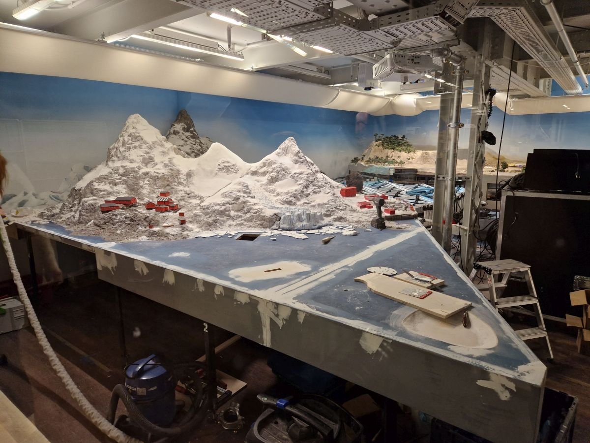 In dem großen Saal, den Ihr alle vom mfm kennt, wird seit einigen Monaten hinter Rios Favellas Patagonien mit der Anarktis aufgebaut. Das sollte aus diversen Wochenberichten und den Sonntags-Youtube-Filmen, bekannt sein.