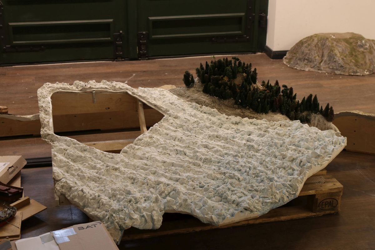 In der Zwischenzeit gibt es einen Eindruck der antarktischen Rumpelkammer. Da wäre zunächst einmal die begehbare Eishöhle, für die Teresa gerade ein Diorama anfertigt. und noch einige andere Teile des großen Puzzles.