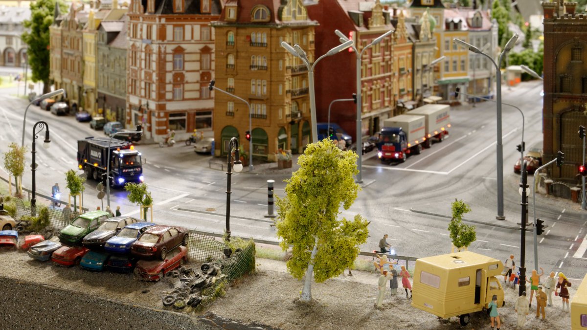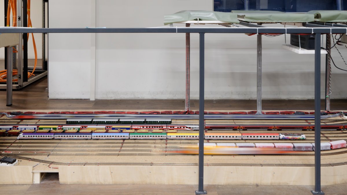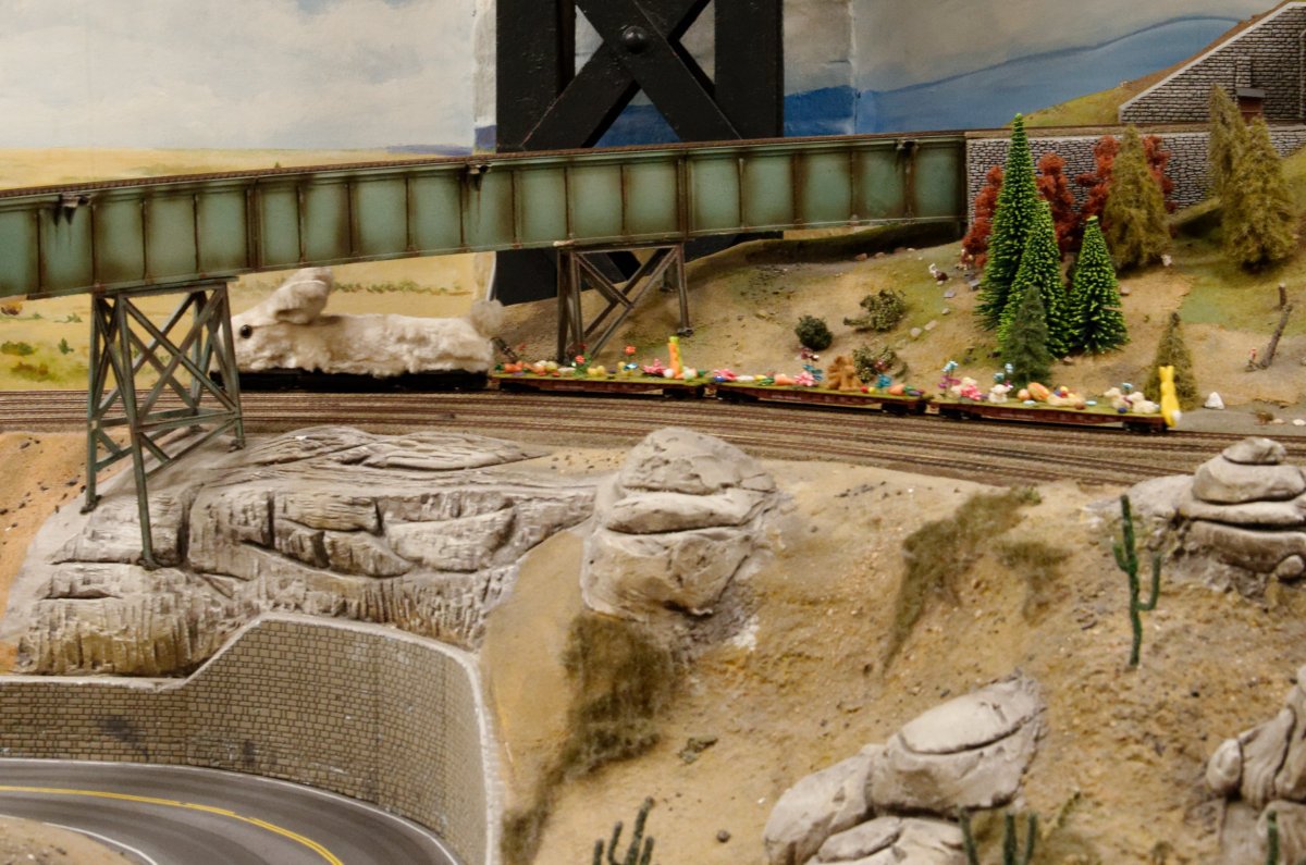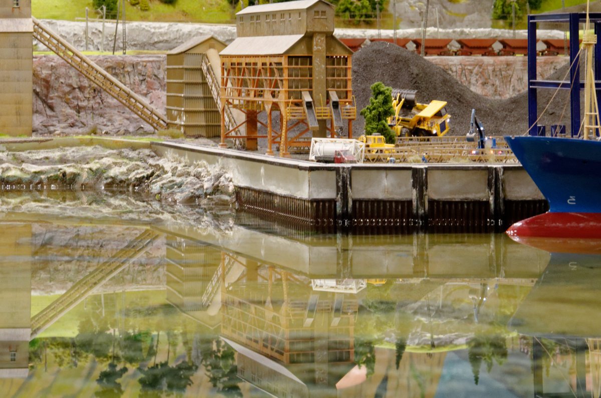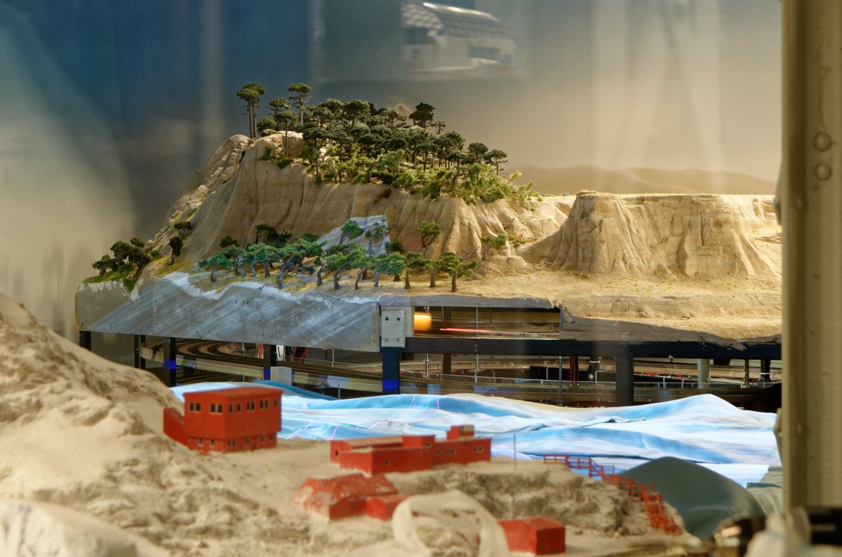 Nachdem die WuStVO aufgehoben ist, kann man nun wieder direkt von den Schließfächern zu den Werkstätten laufen und dabei Teresa über die Schulter gucken:Auf dem Weg nach Südamerika kommt man an Schattenbahnhöfen vorbei, die einen schnelle Zugfolge über die Brücke ermöglichen.Außer einem eher europäisch anmutenden IC mit Regenbogendächern wartet dort der wohl wertvollste, da mit Gold beladene Zug:Eine Einladung an Diebe, die hier in Rio von der Polizei gestellt werden:Überhaupt ist Rio durch und durch gespickt mit Details...... die sogar die abenteuerlichen Elektroinstallationen an der italienischen Amalfiküste weit in den Schatten stellen:An der Antarktis wird sowohl auf der Anlageals auch unter der Anlage fleißig gearbeitet.Hinter der schon von der Feuer-wer erwähnten Drake-Passage mit ausgeklügelter Mechanik...erkennt man typisch südamerikanische Bäume, die vor allem in direkter Küstennähe stark vom Wind gezeichnet sind.